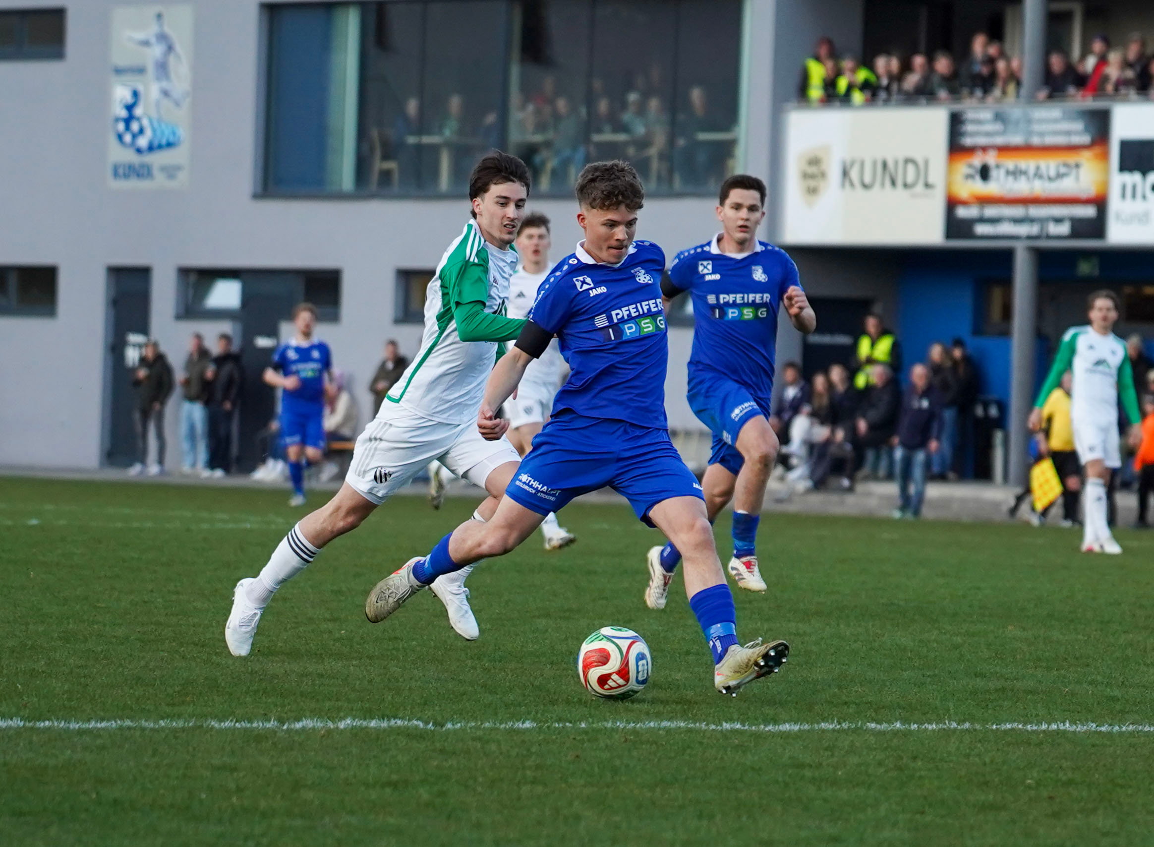 In der 2. Halbzeit kontrollierten wir das Spiel über weite Phasen und hatten eindeutig mehr Ballbesitz ohne jedoch zwingend vor dem Tor der Gäste aufzutauchen. Den Gästen wurde in dieser Phase wenig Raum zum Spielen gegeben und wenn es zu einer gefährlichen Situation kam, konnte unsere Mannschaft diese erfolgreich verteidigen. In der 73. Spielminute konnte unsere Mannschaft das Spiel dann endgültig für sich entscheiden, als Jakob Antretter nach einem Eckball seinen 2. Treffer an diesem Tag erzielte und das Achenstadion endgültig in absolute Feierstimmung brachte. Die gute Stimmung konnte auch der Anschlusstreffer der Gäste in der 76. Spielminute nach einem Freistoß nicht mehr trüben und wir konnten den verdienten 3:1 Sieg routiniert nach Hause spielen.