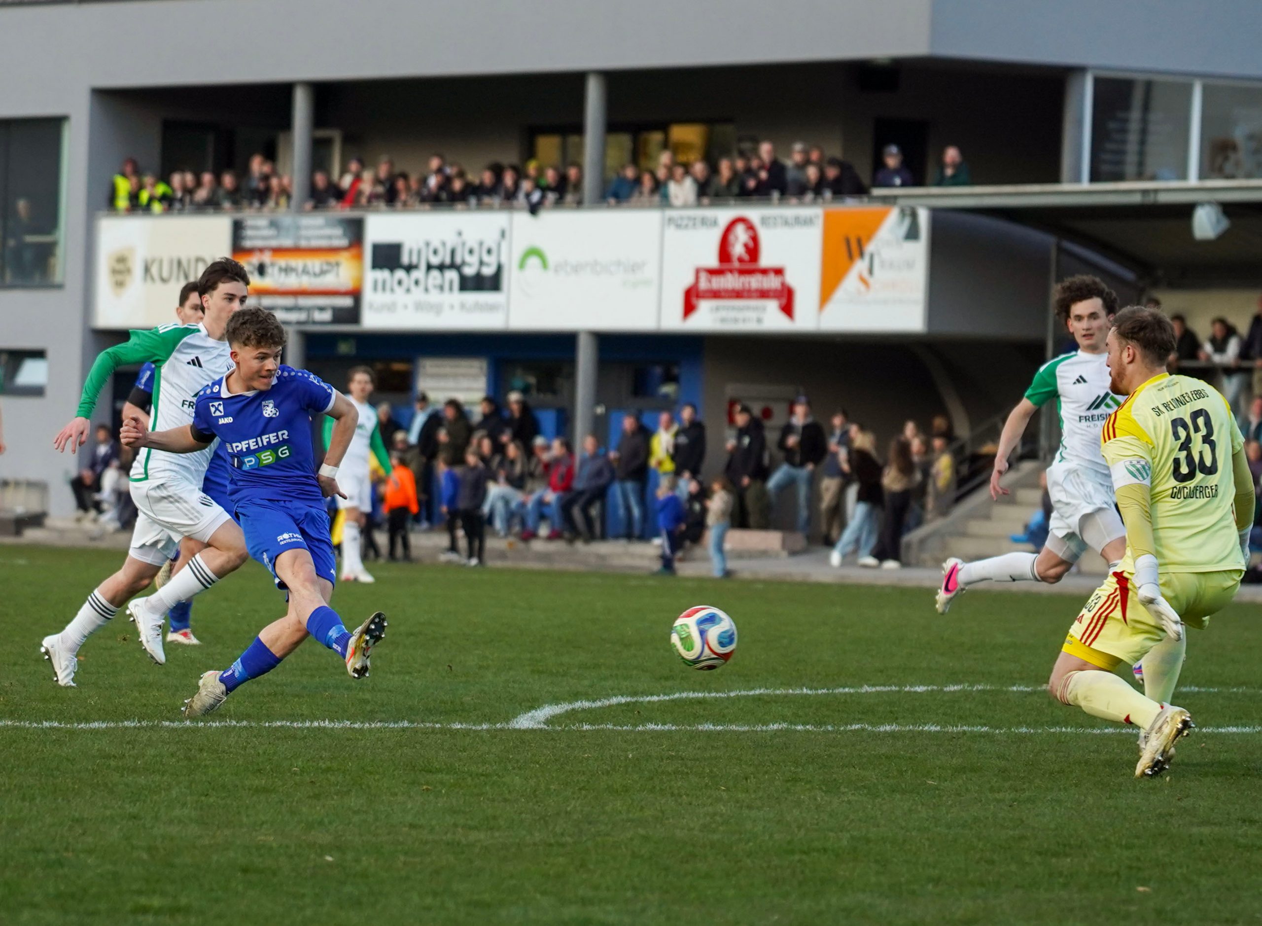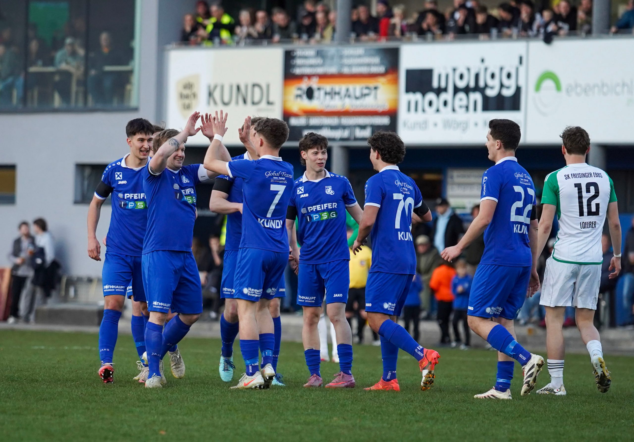 Nach der sehr unglücklichen Niederlage in Fügen war unsere Mannschaft auf Wiedergutmachung aus. Die Mannen von Coach Stefan Oberhuber gingen vor 400 Zuschauern motiviert bis in die Haarspitzen in das Spiel gegen Ebbs und wollten von Beginn an zeigen, wer der Herr im Haus ist. Ebbs kam zwar etwas stärker ins Spiel und unser aktuell herausragend spielender Torhüter Toni Thurner konnte mit Unterstützung seiner Vordermänner einen frühen Rückstand verhindern, spätestens in der 12. Spielminute war aber allen klar, in welche Richtung das Spiel an diesem Abend laufen sollte. Ein hoher Ball von Kapitän Sandro Gschwentner über die Verteidiger der Ebbser Abwehr wurde von Jakob Antretter in abgeklärter Manier zum 1:0 verwertet. In der 20. Spielminute konnte die Führung ausgebaut werden, nachdem eine Flanke von Haaser Dominik von einem Verteidiger der Gäste ins eigene Tor abgelenkt wurde. Bis zur Pause verlief das Spiel recht ausgeglichen weiter und auch Dank einer weiteren Glanzparade von Toni Thurner ging es mit einer 2:0 Führung in die Halbzeit.