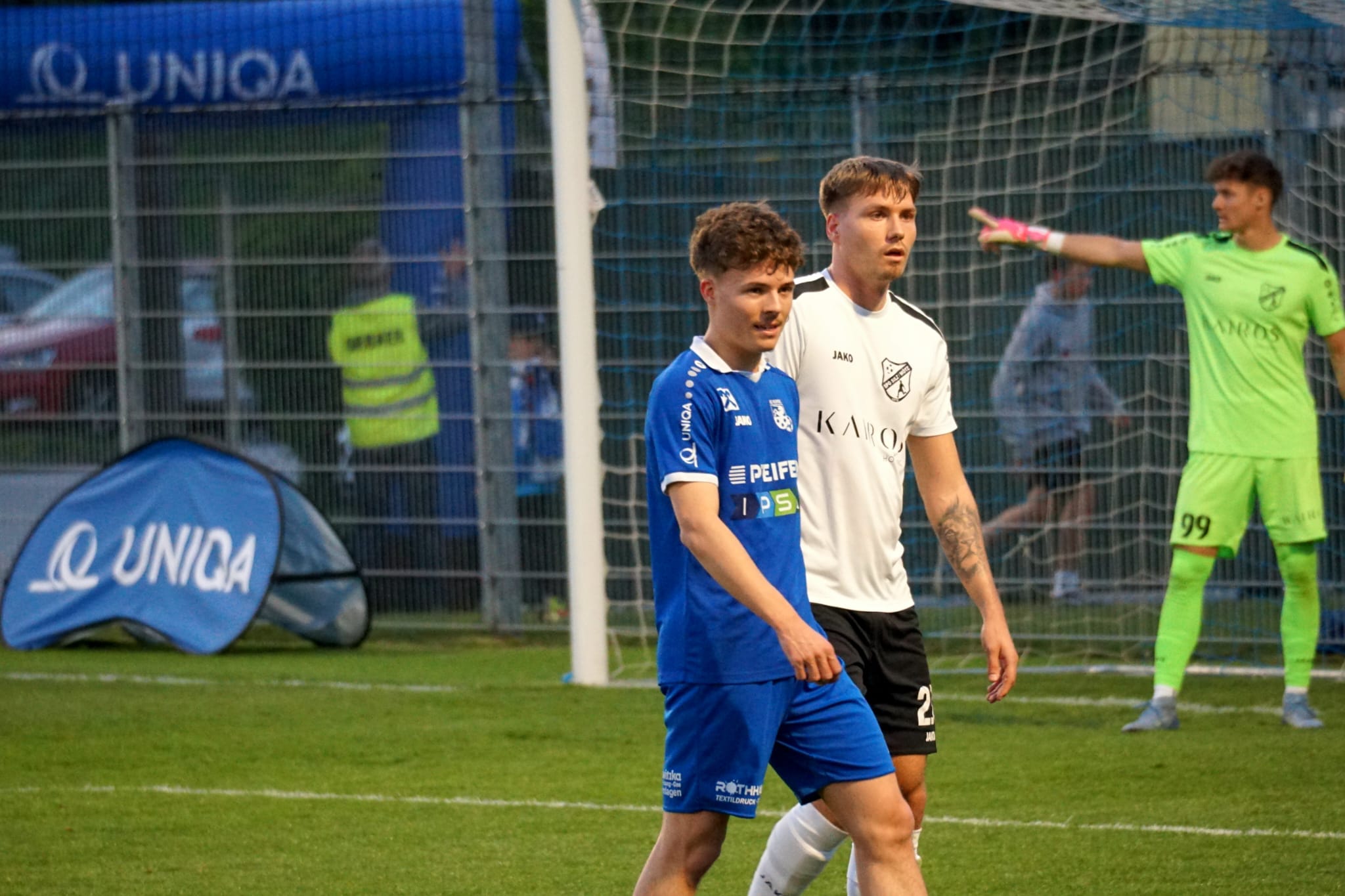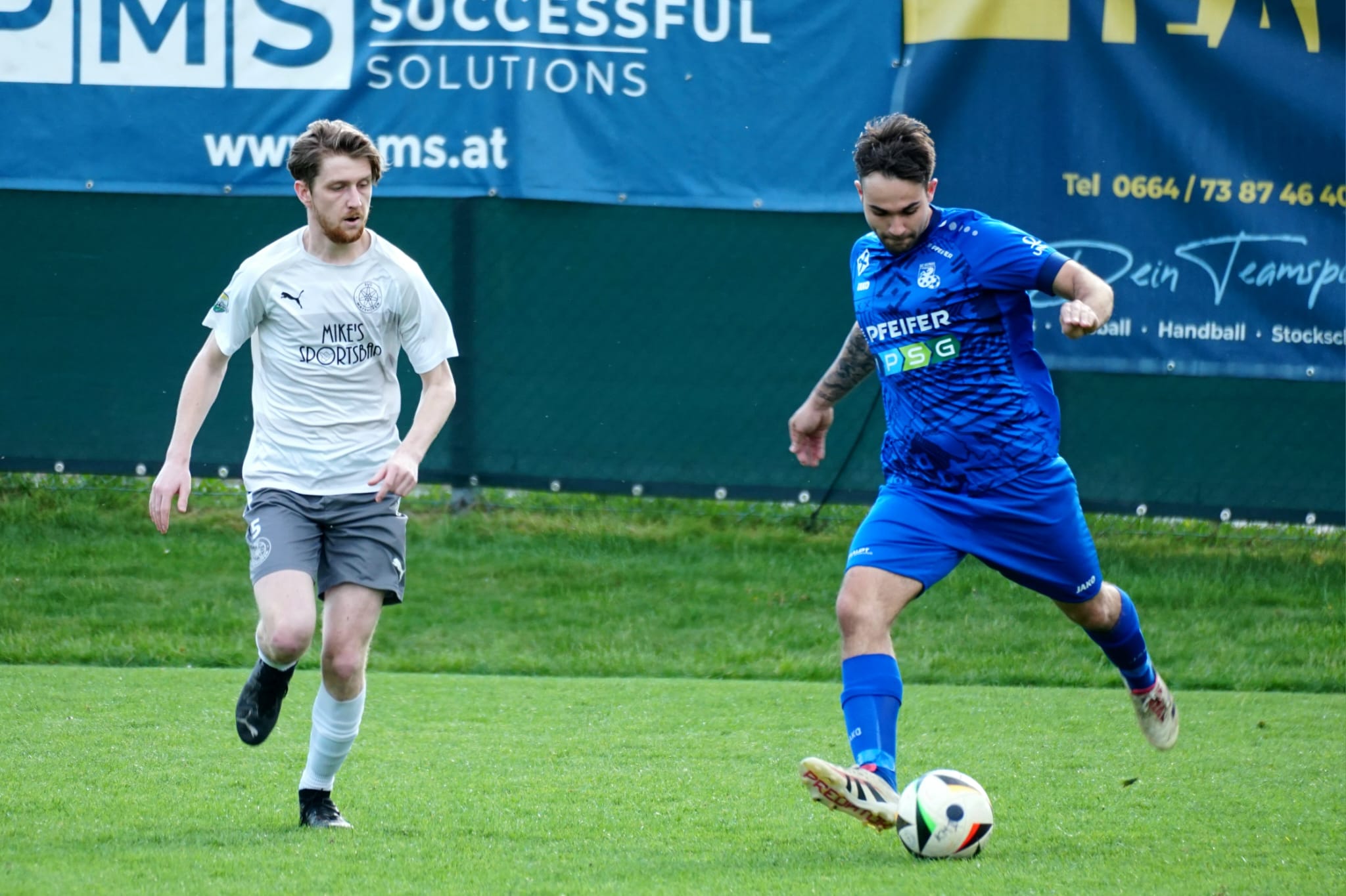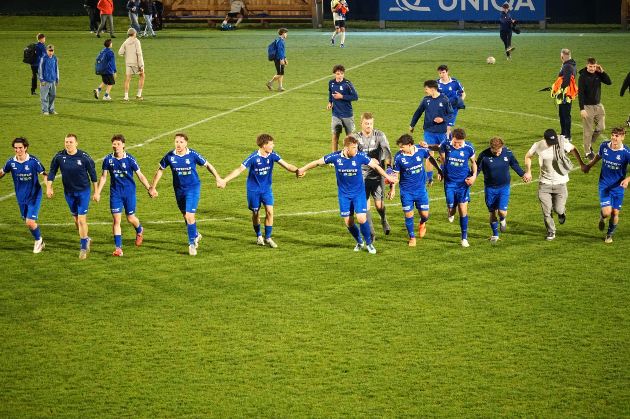 Die 2. Halbzeit begann in den ersten Minuten noch recht ausgeglichen, bis unser Trainer Stefan Oberhuber mit einem Doppelwechsel in der 63. Minute noch frischen Schwung in unser Spiel brachte. Nur zwei Minuten später erzielte der zuvor eingewechselte Noah Larch seinen Premierentreffer für die KM1. Der Anschlusstreffer der Gäste in der 68. Minute konnte unsere Mannschaft nicht aus der Ruhe bringen und bereits 5 Minuten später erzielte Dominik Haaser das vorentscheidende 3:1. Als Jakob Antretter mit seinem zweiten Tor auf 4:1 stellte, waren sich die mehr als 300 anwesenden Zuschauer einig, dass wir dieses Spiel als Sieger beenden werden. Das 5:1 in der 83. Minute erzielte Benjamin Weidhofer aus einem Strafstoß. Das Spiel wurde dann trocken und überlegt zu Ende gespielt und wir konnten uns mit diesem großartigen Ergebnis für die hohe Auswärtsniederlage revanchieren.
